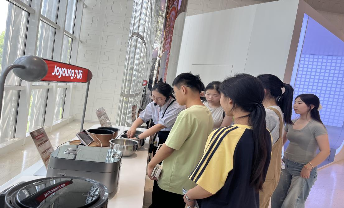 师生们前往九阳品牌体验馆,探索小家电行业的品牌建设与创新实践。学生们通过互动装置体验了九阳最新款的智能厨房产品,听取了企业导师关于“如何通过用户体验驱动产品研发”的专题分享。在智能化生产车间内,企业导师讲解了自动化生产线的运作流程,介绍了工业互联网在质量控制中的应用。同学们对“智能制造如何降本增效”表现出浓厚兴趣,纷纷结合课堂所学的供应链管理知识提出问题。企业导师耐心解答,鼓励学生们在实训报告中深入分析智能制造对传统贸易模式的变革影响。参观结束后,学生们在教师的指导下,开始梳理九阳案例的关键点,包括品牌定位、研发投入、智能化转型等,为后续的实训报告积累素材。