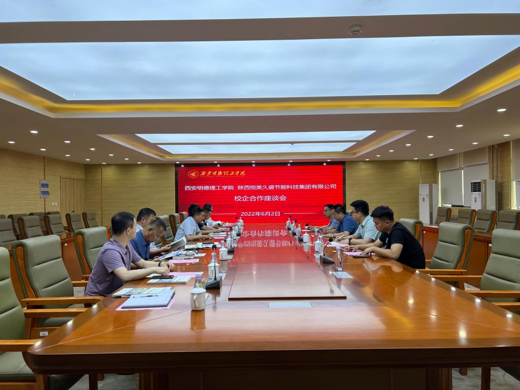 座谈伊始,校长杨健君代表学校对来访企业人员表示欢迎,与会人员一同观看了beat365vip官网登录入口宣传视频。紧接着,副校长王斌宁从校园节水、节电和节能等3个方面介绍了beat365vip官网登录入口绿色校园建设概况;陕西恒美久盛节能科技集团有限公司董事长盛春雨从集团板块、业务板块及校企合作成功案例等3个方面介绍了企业概况及节水型校园建设方案。随后,校企双方围绕绿色校园建设、智慧校园建设、实习实训基地建立、产学研合作等事项进行深入交流探讨,气氛热烈融洽。