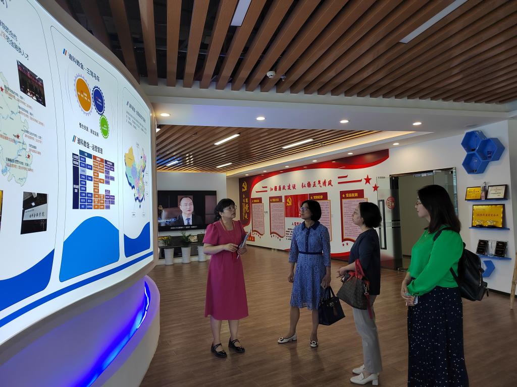 在迪科数金人力资源部经理潘冰华的陪同下,刘敏副院长一行分别参观了迪科数金的展览馆以及金融业务职场,对迪科数金发展战略、业务板块有了进一步了解,并就职场工作的业务类型及工作要求进行了深入的交流。座谈会上,该企业田志卿总经理对我院一行的到来表示了热烈地欢迎,对学院为公司输送优秀的人才表示衷心的感谢。张莉萍老师介绍了经济与管理学院金融学专业的基本情况,校企双方进一步交流了学生实习实践,就业基地建立等事项,就下一步具体合作方式达成共识。