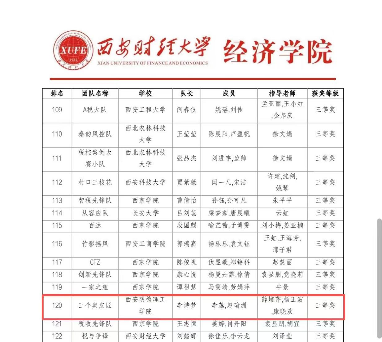 11月3日,2025年全国本科院校税收风险管控案例大赛圆满结束,经济与管理学院参赛队喜获陕西赛区一等奖一项、三等奖一项。自赛事启动以来,学院积极响应、认真筹备,在薛培芹、康晓欢、杨正波、董钰等会计学专业教师的指导下,五支代表队的十五名同学凭借扎实的理论功底、良好的分析能力与高效的团队协作,在激烈竞争中脱颖而出,获得佳绩。