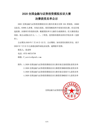 2020全国金融与证券投资模拟实训大赛获奖名单