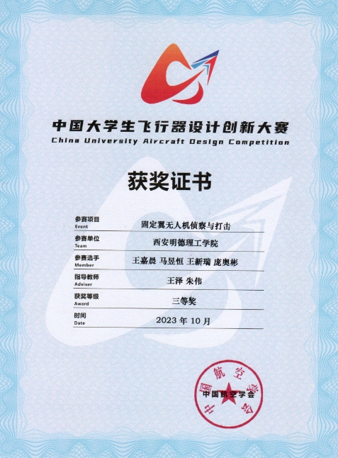 学院航模队在2023中国大学生飞行器设计创新大赛总决赛中再创佳绩