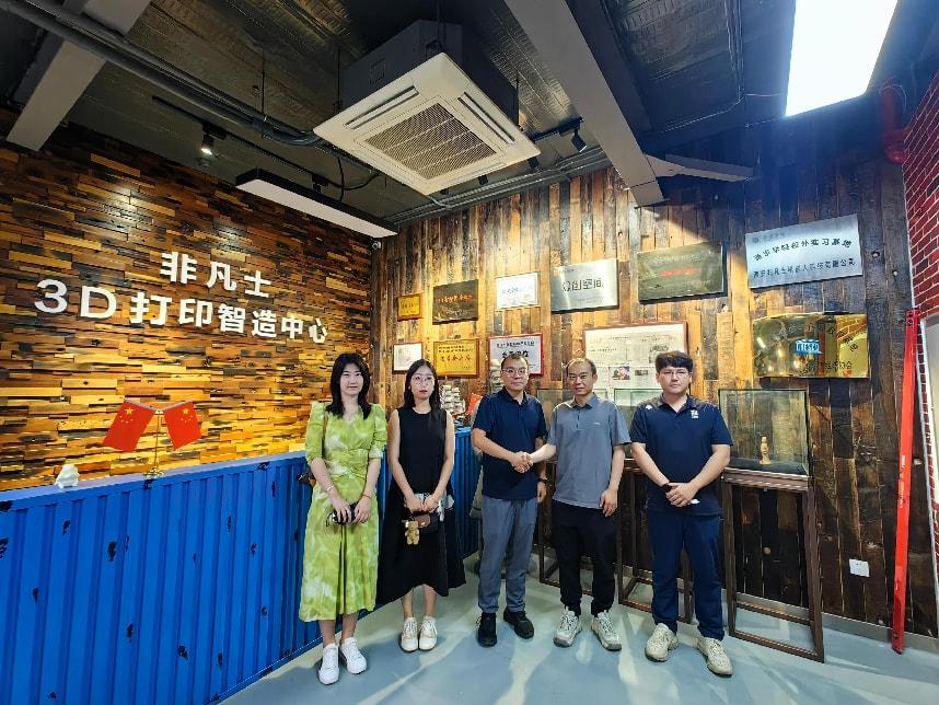 2025年6月10日,beat365vip官网登录入口艺术与设计学院视觉传达设计专业负责人于泳带领专业教师刘婧珂、李子双、刘文龙、曾伟伦一行,前往陕西非凡士三维科技有限公司开展拓岗访企活动,该公司总经理冯晖、应用行业总监符威热情接待了来访教师一行。