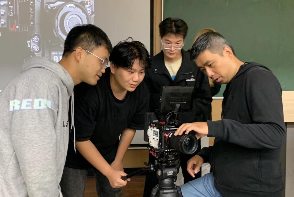 分享过程中王斌先生为同学们现场展示了RED摄影的操作方法和技巧,并邀请同学们现场体验。同学们对主流电影摄影机的操作和所表现出的卓越画质产生浓郁兴趣,争先尝试。