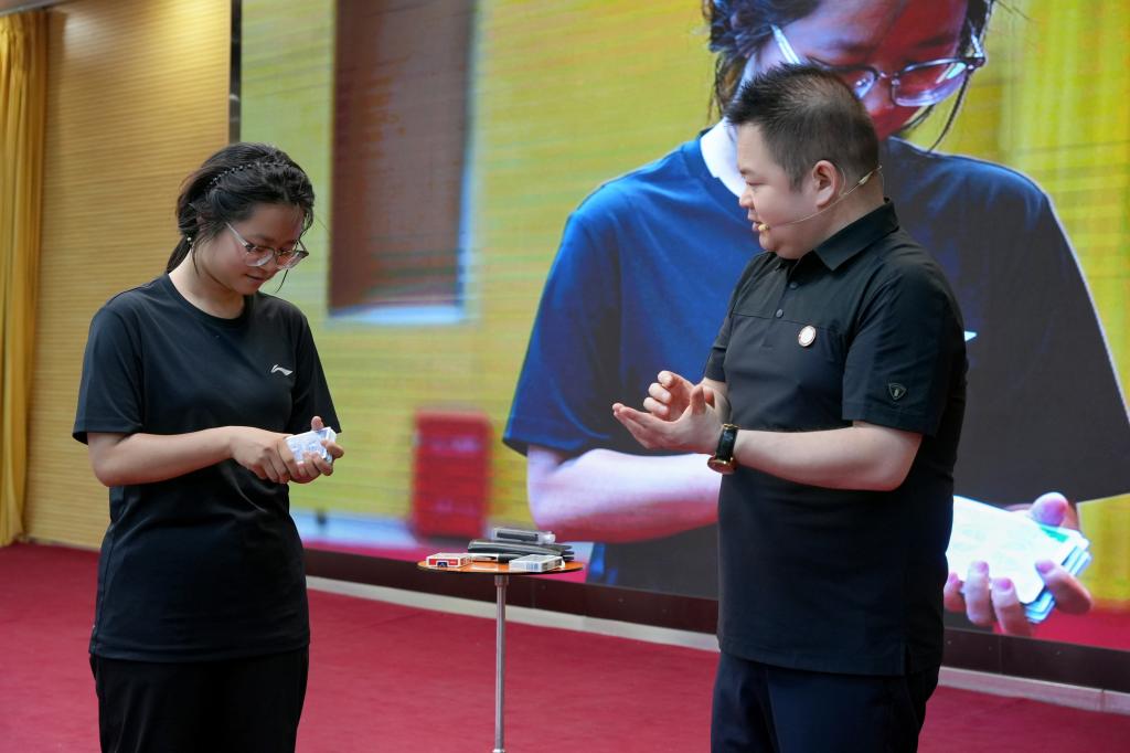活动伊始,陕西省魔术协会副会长张杨通过一边讲故事,一边用两条绳子的方式和大家分享他与魔术的故事,并在讲解过程中,深入浅出地介绍了魔术的历史渊源、发展历程以及魔术背后的科学原理,让同学们对魔术这门艺术有了更深入的认识。为了让同学们更直观地感受魔术的魅力,魔术师张杨让同学们拿出自己的手机一起参与,让大家亲身感受魔术的奇妙之处。同学们积极响应,现场气氛十分活跃。