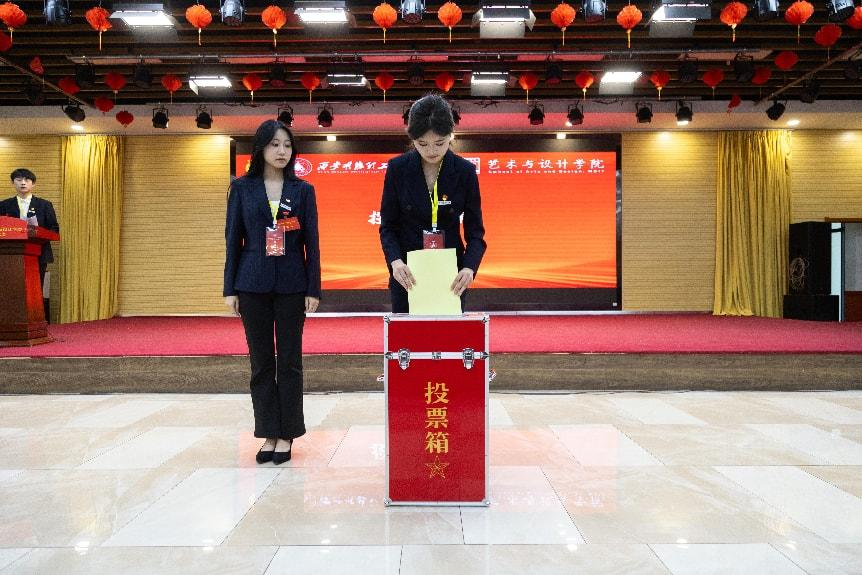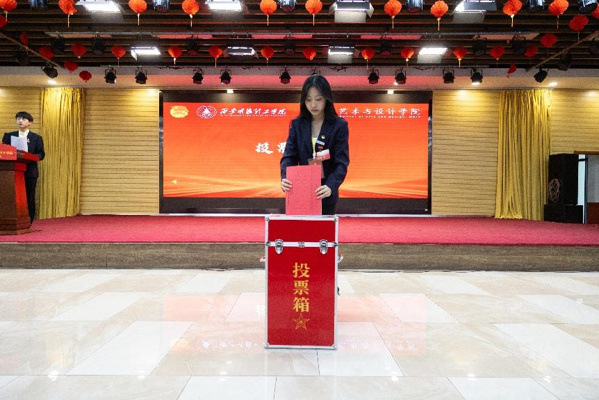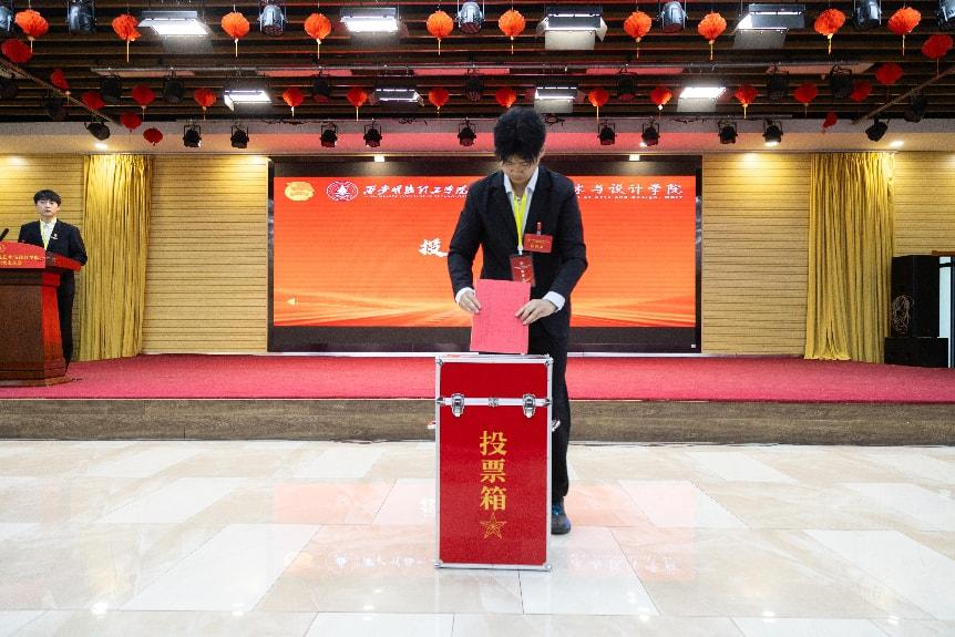 大会审议通过了《大会选举办法(草案)》,在总监票人盛善超的主持下,选举环节严格遵循民主集中制原则有序开展。经无记名投票、差额选举、大会产生艺术与设计学院第四届学生委员会8名委员,出席校级第五次学生代表大会代表20名以及新一届学生会主席团成员3名。选举过程公开透明,充分展现了青年学子参与学院民主管理的热情与责任感。