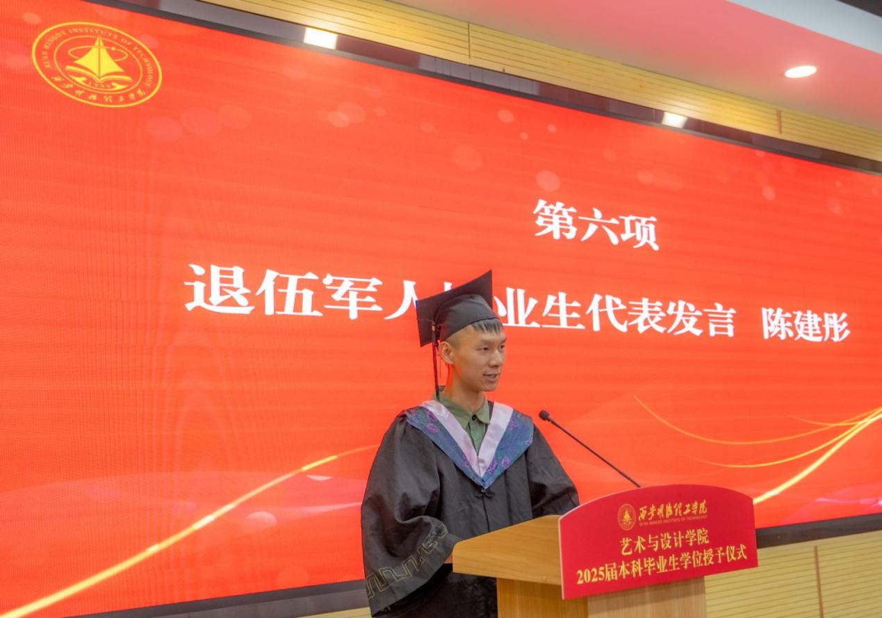 毕业生代表陈建彤同学发言,表达了对母校、老师和同学的感激之情,以及对未来生活的憧憬和信心。