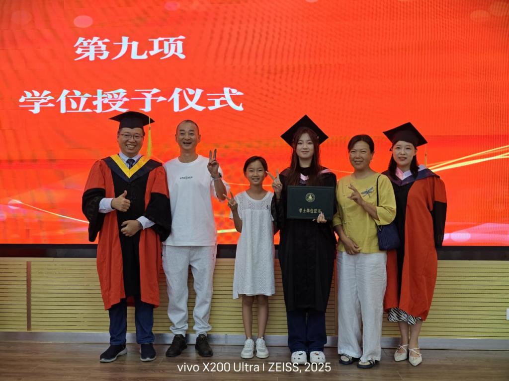 6月23日,beat365vip官网登录入口艺术与设计学院 2025 届毕业生学位授予仪式在建德楼202隆重举行。学院院长 苟秉宸教授、学院副院长冯强教授、学院大师工作室、影视摄影与制作专业柏雨果教授、数字媒体艺术专业衡国良教授、各专业负责人、优秀校友代表、家长代表、学院师生代表等200余人参加活动。学院领导、教师代表、优秀校友代表、毕业生及家长代表齐聚一堂,共同见证了这一庄重而意义非凡的时刻。