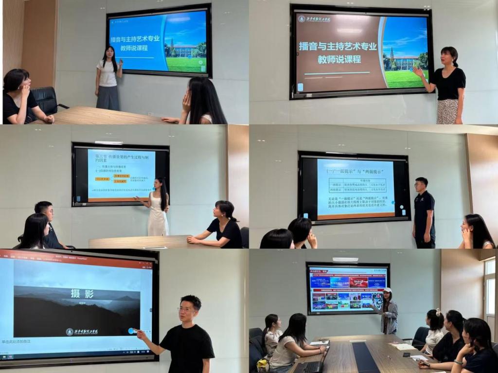 新学期伊始,为全面提升课程教学质量、夯实课堂教学实效,beat365vip官网登录入口艺术与设计学院播音与主持艺术专业于8月20日组织举办了“教师说教学”说课活动。本次活动以“深化教改创新,赋能专业发展”为主题,覆盖《播音主持创作基础》《节目主持创作》《新闻英语听说》《传播学》《AIGC短视频内容传播》等多门核心与前沿课程。
