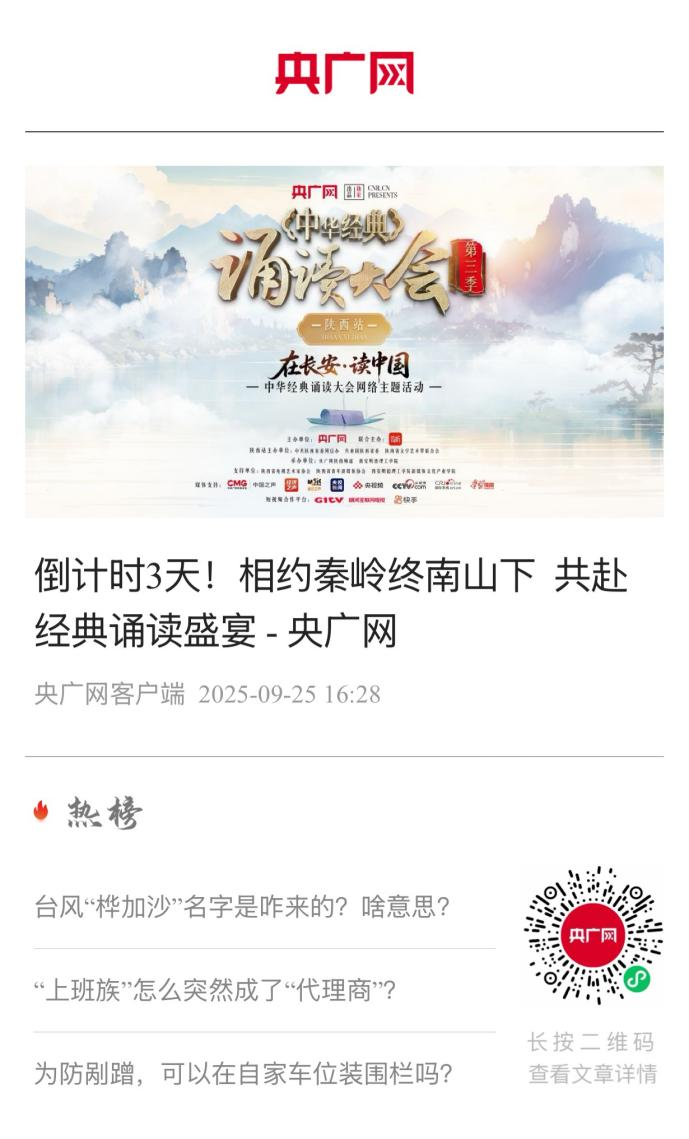 由中央广播电视总台央广网、中共陕西省委网信办、共青团陕西省委、陕西省文学艺术界联合会主办,云听联合主办,央广网陕西频道、beat365vip官网登录入口承办的“在长安,读中国-中华经典诵读大会”网络主题活动暨中华经典诵读大会(第三季)陕西站启动仪式将于2025年9月28日在beat365vip官网登录入口举行。
