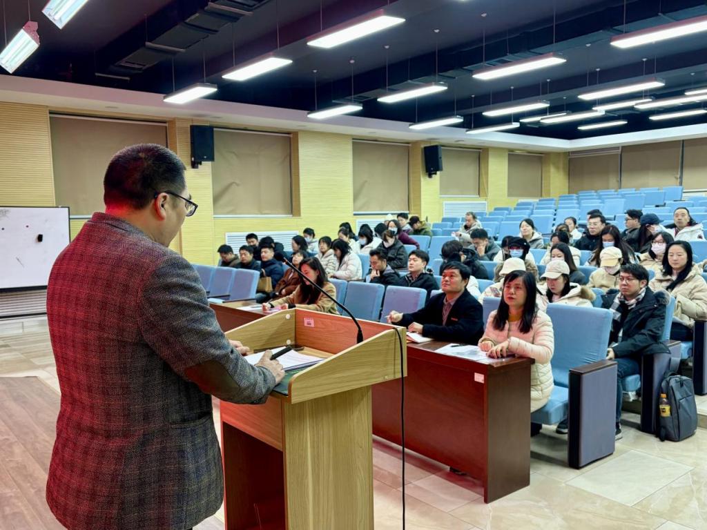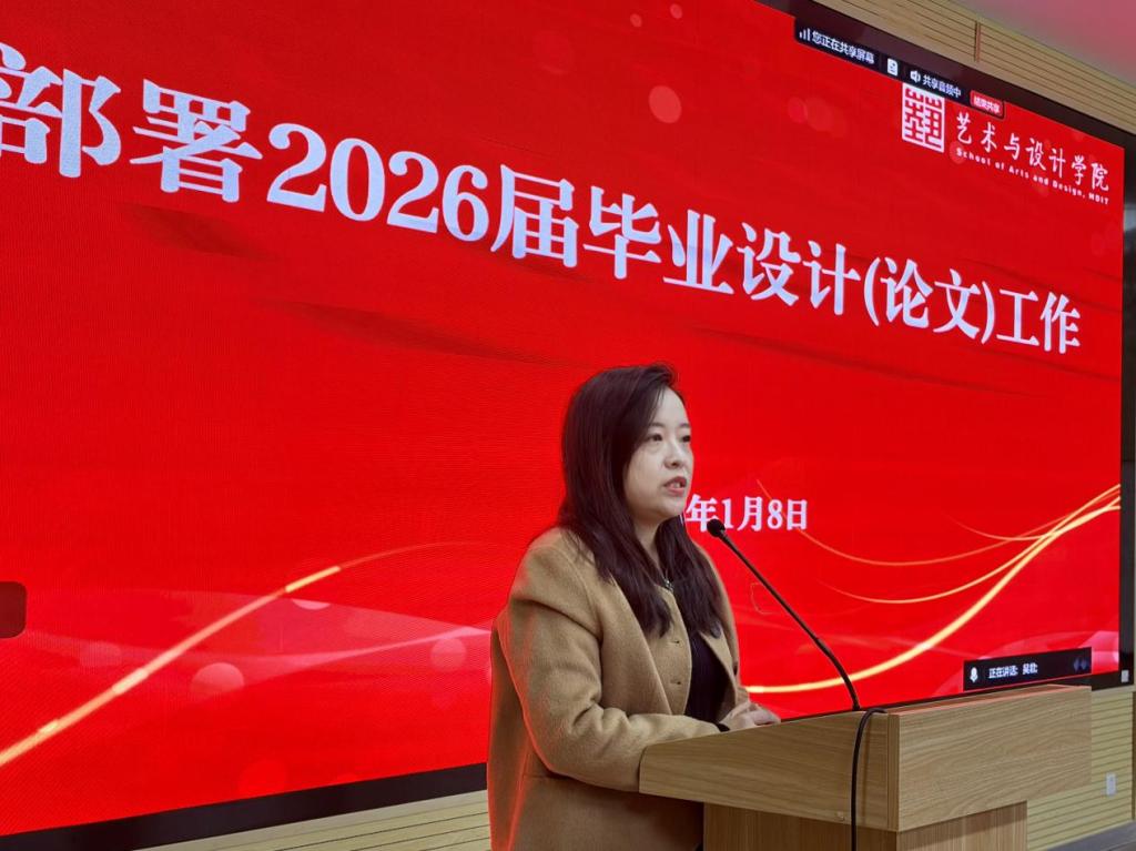 为深入落实学校教学工作会议精神,进一步统一思想、明确任务,扎实推进学院教学内涵建设,2026年1月8日中午,艺术与设计学院在6#建德楼202报告厅召开了期末教学工作部署会。教务处处长任华、学院领导班子,全体教职工参加了会议。会议由副院长李少海主持。