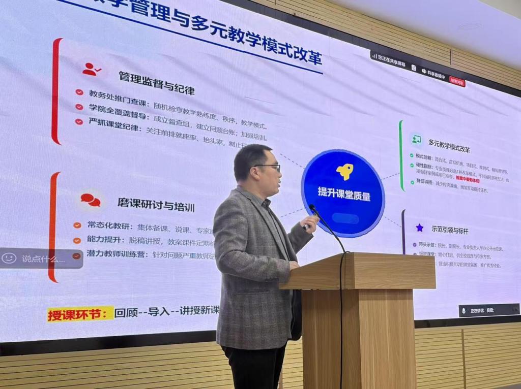 会上,学院结合教务处2025-2026学年第一学期第四次教学工作会议精神,对本学期末及下学期的重点教学工作进行了全面、细致的部署。