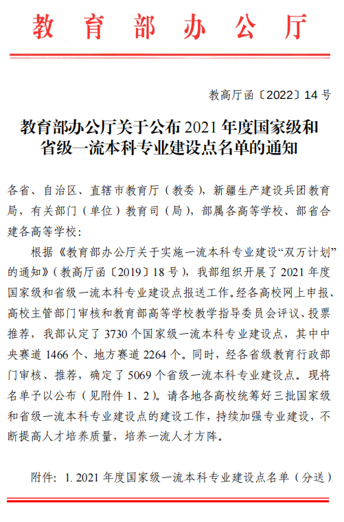 近日,教育部印发了《教育部办公厅关于公布2021年度国家级和省级一流本科专业建设点名单的通知》文件,公布了2021年度国家级和省级一流本科专业建设点名单。beat365播音与主持艺术专业获批省级一流本科专业建设点。截止到目前,beat365共有国家级一流本科专业建设点1个,省级一流本科专业建设点4个。