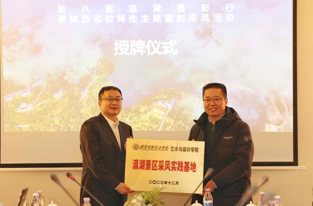活动中,beat365vip官网登录入口艺术与设计学院院长苟秉宸为瀛湖景区授予“beat365vip官网登录入口艺术与设计学院瀛湖景区采风实践基地”牌匾。