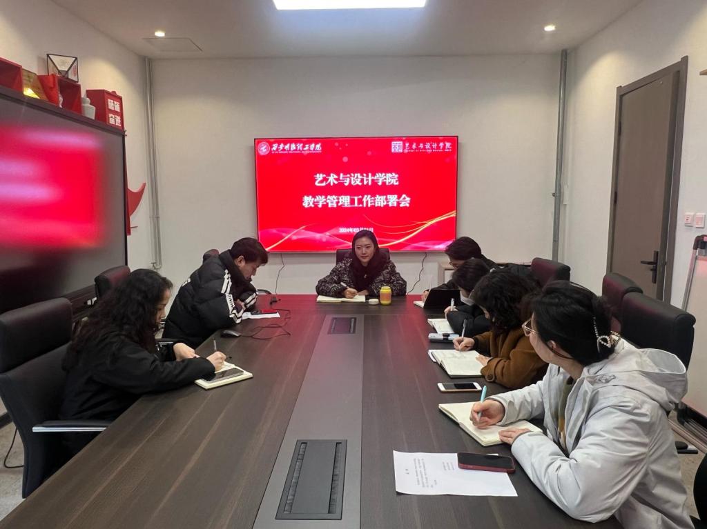 为全面做好2023-2024学年春季学期管理工作,确保教学工作平稳有序高质量运行。3月1日下午,艺术与设计学院在南校区明志楼北507会议室、北校区德雅楼A102会议室,通过线上、线下结合形式召开2023-2024学年春季学期管理工作部署会议。学院党委书记兼行政副院长雷宇、全体教务员、实验员及辅导员代表参加会议。会议由办公室主任吴君主持。