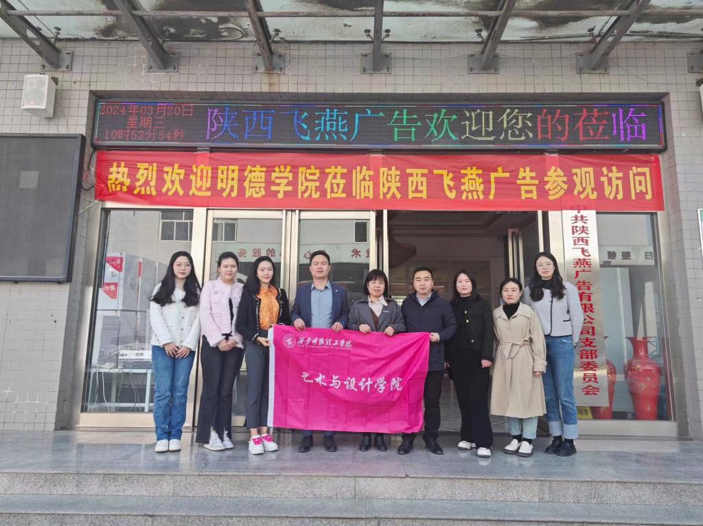 为落实访企拓岗促就业专项行动要求,深入对接我院相关企业用人需求,加强校企合作横向联系,进一步促进2024届毕业生更加充分高质量就业。3月20日上午艺术与设计学院党委书记兼行政副院长雷宇、高等职业技术学院党总支书记、副院长王庭良、广告艺术设计专业负责人舒粉利、毕业班辅导员张睿华及刘一涵、广告艺术设计专业辅导员卫莹涛及王梦松等一行前往陕西飞燕广告有限公司开展了访企拓岗促就业专项行动,陕西飞燕广告有限公司总经理徐飞陪同参观并进行交流座谈。
