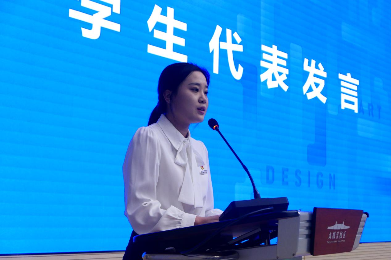 视觉传达设计专业教师代表范争争为毕业生送上祝福。他回顾了和2024届毕业生课堂内外相处的点点滴滴,肯定了学生们在理论知识学习和艺术创作实践中取得的优秀成绩。毕业之际,他对毕业生提出两点希望,一是希望同学们在新的征程中继续保持对艺术的热爱与执着,坚持梦想,勇敢追求;二是希望大家能够在工作中不断学习,提升自己的专业能力和综合素质,为未来的发展打下坚实的基础。