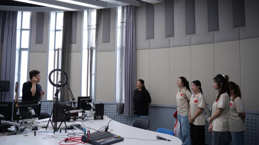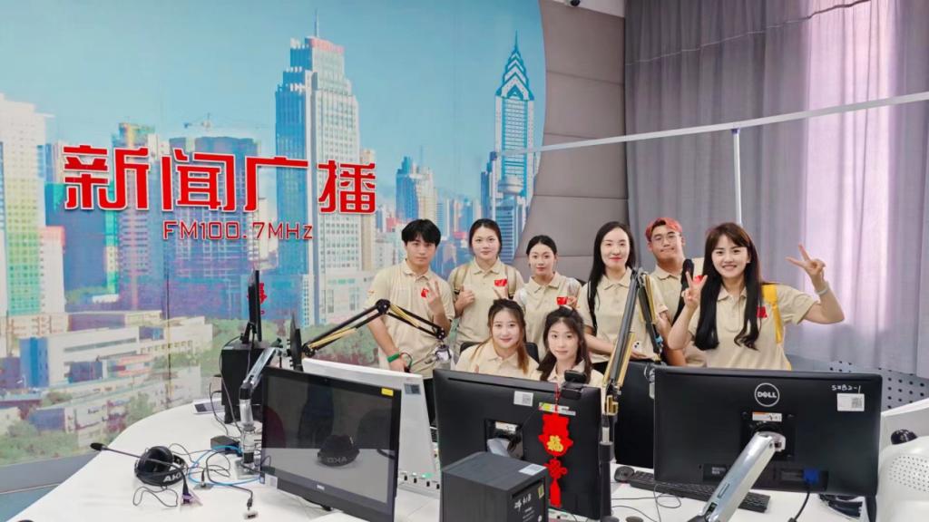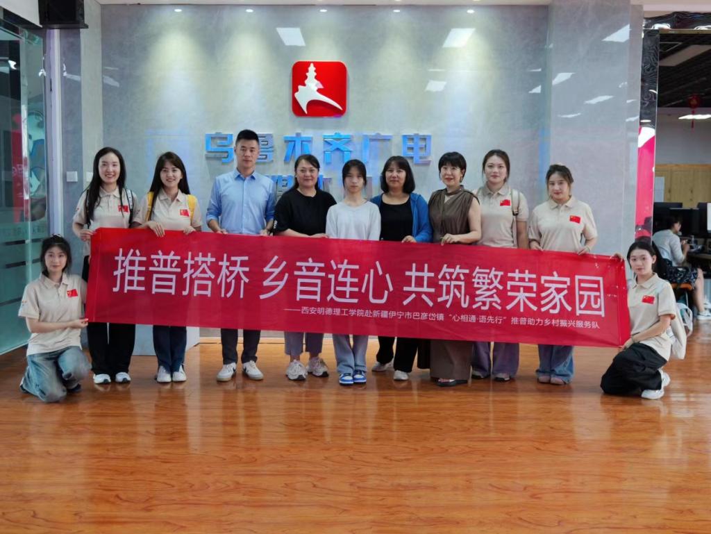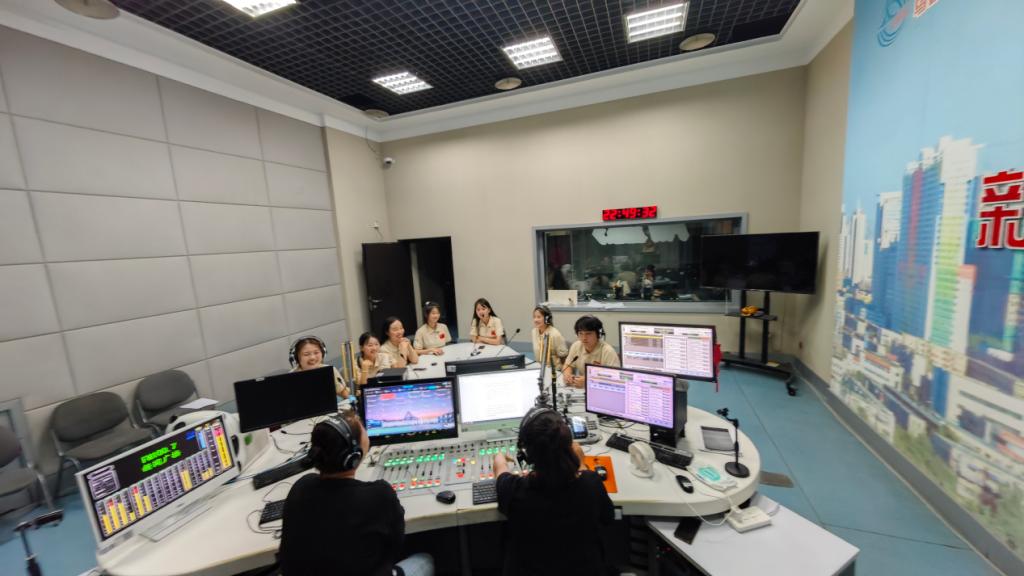 beat365vip官网登录入口艺术与设计学院播音与主持艺术专业暑期社会实践项目《新疆伊宁市巴彦岱镇“心相通·语先行”推普助力乡村振兴服务队》(入选教育部2024年立项),以党的二十大精神为引领,贯彻落实推普助力乡村振兴相关文件指示精神,紧紧围绕学校办学特色、育人模式,基于省级一流专业背景,充分发挥省级社会实践一流课程优势(新媒体前沿工作坊),依托2023年新疆妇联“石榴花”项目为全疆3万名妇联成员提供了普通话学习机会,得到了各地政府与妇联的大力支持,受到了社会各界媒体的关注,7月12日,播音与主持艺术专业师生有幸受邀前往乌鲁木齐广播电视台(广播电视集团)参观学习进行实践采风活动,同时坐客FM100.7《快乐冲击波》节目,与主持人古丽米娜•艾来热提老师同台直播。
