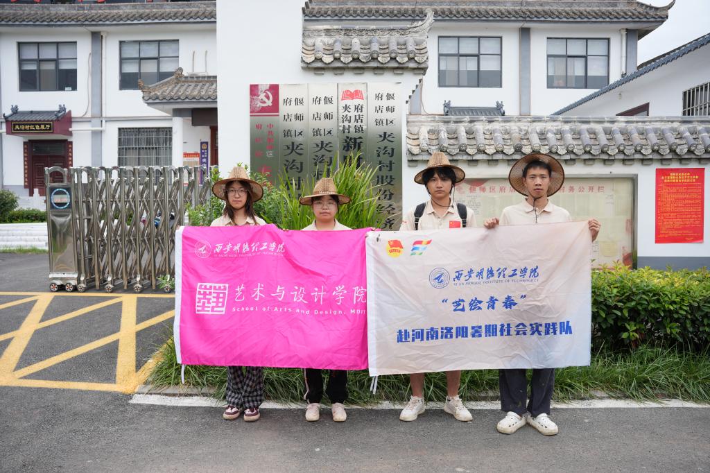 “艺绘青春·助力新村”暑期社会实践墙绘队为洛阳偃师夹沟村村口墙面进行绘画工作,覆盖墙面约36平米。宽阔干净的道路两旁,色彩各样的墙绘格外引人注目。路过的村民纷纷驻足,有的还拿起手机拍照。
