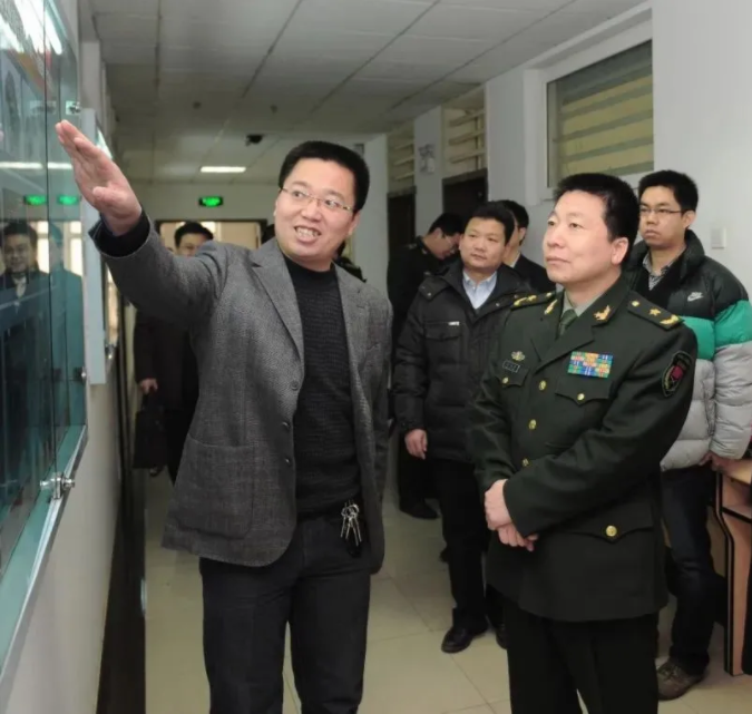 苟秉宸教授向航天英雄杨利伟将军汇报载人航天工业设计成果。(郭友军 摄)
