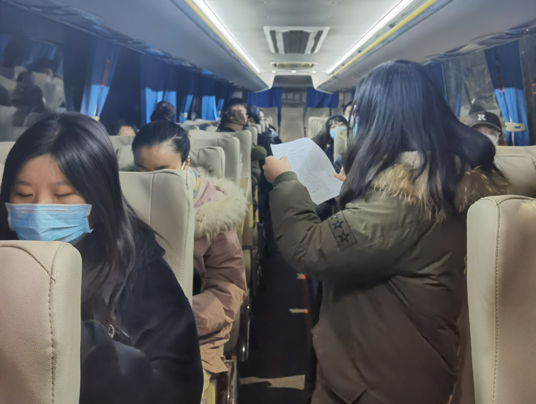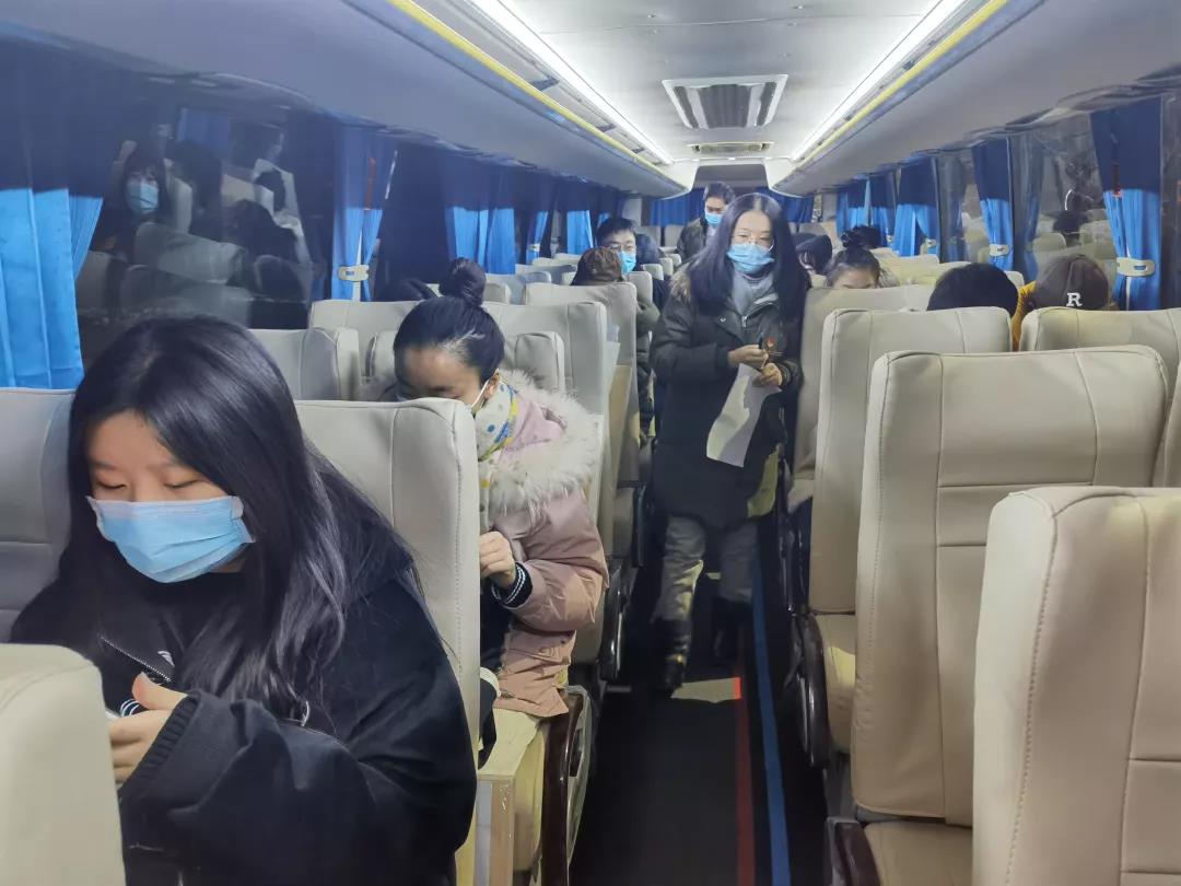 12月25、26日凌晨六点,我院提前联系好的大巴车在学校里集合完毕,根据提前摸排的数据,每辆大巴车上都安排了我院辅导员和老师,接送在外校考点参加考试的学生。