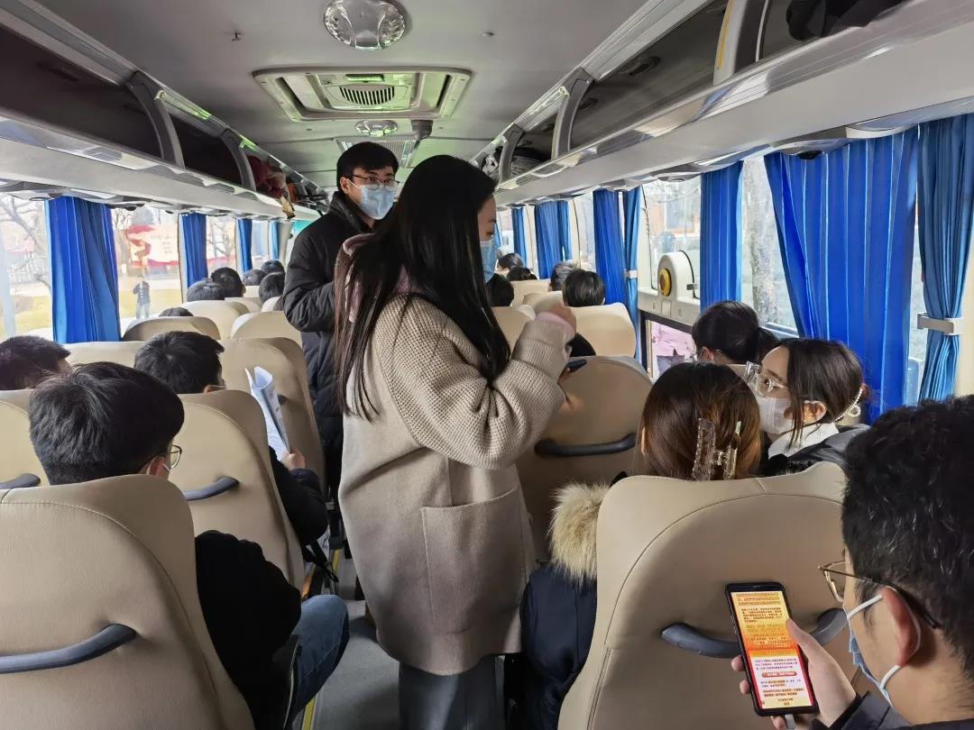 同时,由辅导员、老师提醒学生带齐考试所需物品。学生准时到达乘车点后,每一辆送考车上的辅导员和志愿者都贴心地为考生做好核酸查验及测温工作,清点好人数,确保不漏一人,随后按照提前规划好的时间、地点将考研学子准时送达。考试结束后,我院送考队伍准时出现在考点外,等待接学生安全返校。