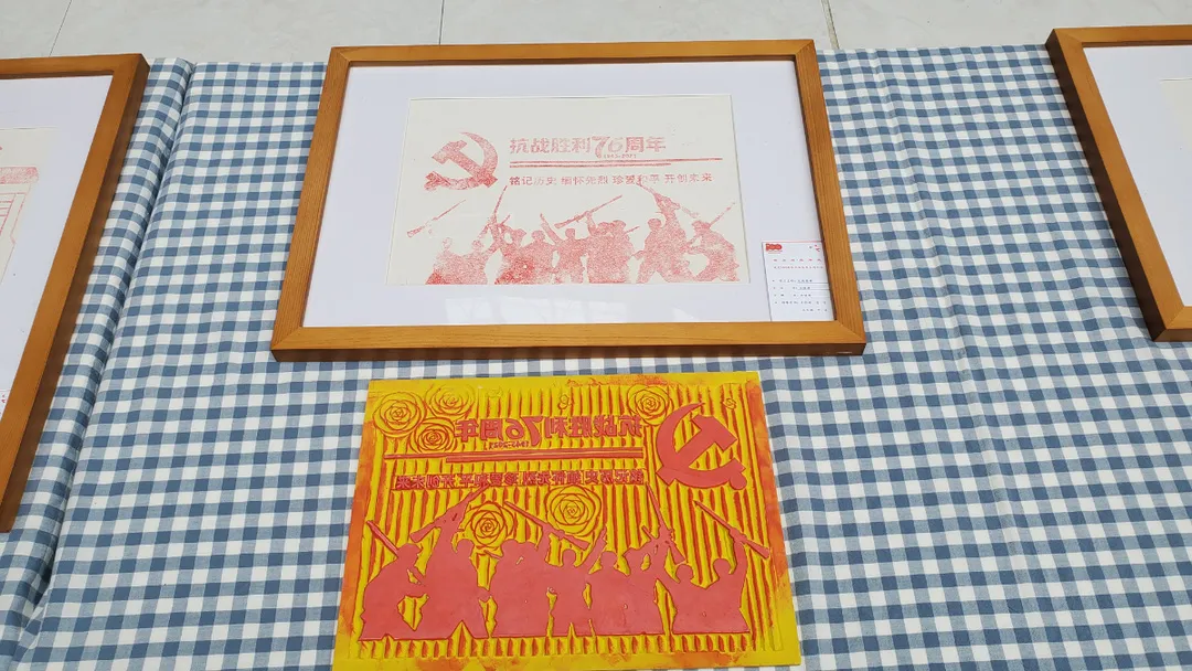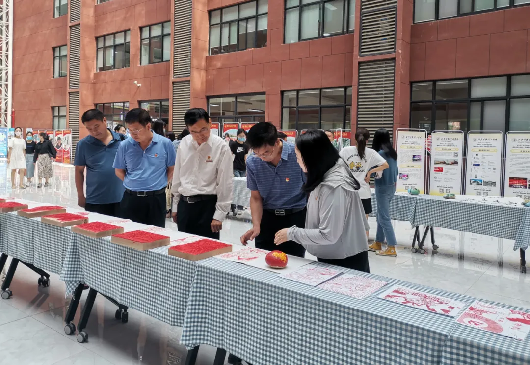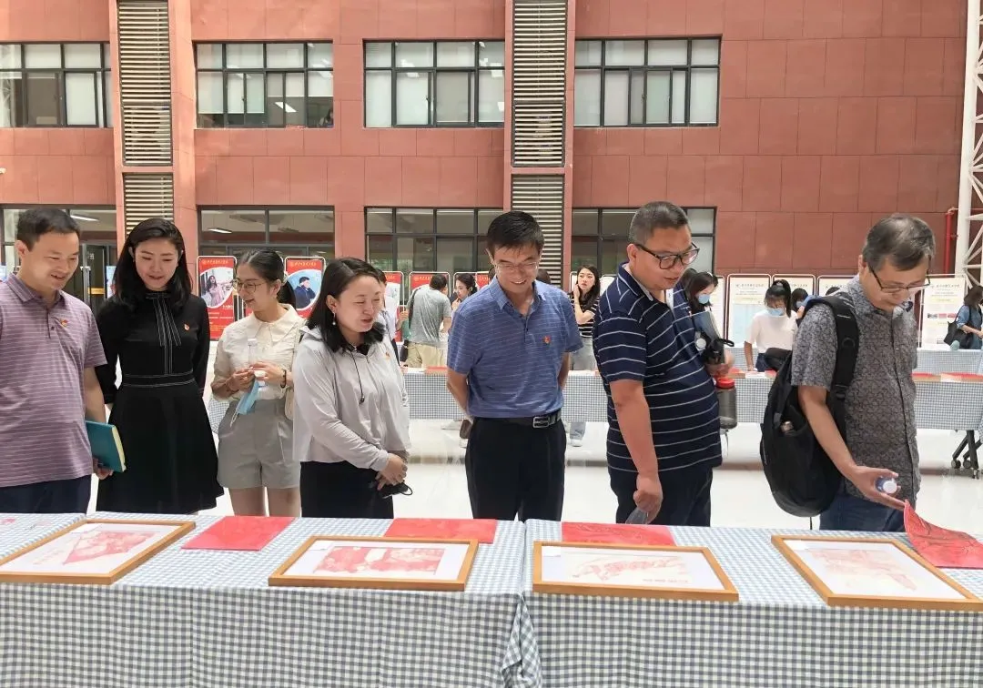 7月1日上午,在收看庆祝中国共产党成立100周年大会后,在校校领导、师生党员前往明志楼中厅,在王怡璇老师的讲解下,共同参观了艺术与设计学院师生创作的“红色精神谱系”木版年画、书法作品、石头画等文艺作品。