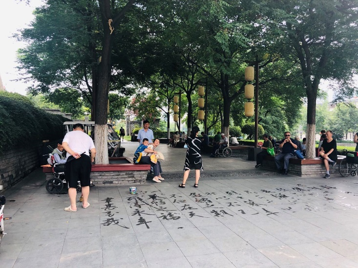 环城公园作为古都西安城墙下的特色滨水空间,成为周边居住老年人的户外休闲游憩场所。同学们走进公园,走到老人身边,与他们聊天。通过交流同学们发现,老年人不仅因为独居或子女远行缺少身心上的关照,随着移动互联时代的到来,老年人成为“数字失能群体”也急需操作的普及。
