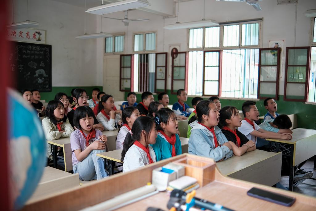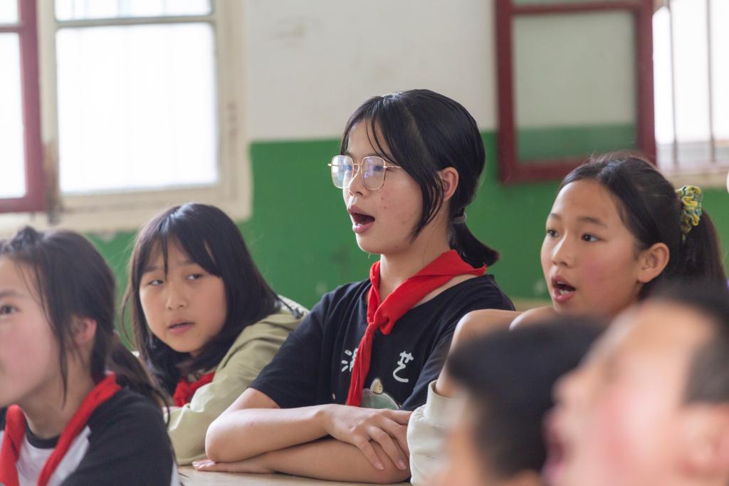 随后,明德学子分组对各年级学生开展“一起来学绕口令”“趣味口部操”“放飞蓝天梦”的课堂教学,做游戏、经典诵读、分组练习,永新希望小学的同学们全情投入,学习了发声技巧、气息运用,寓教于乐的教学方式充分调动同学们学习普通话的积极性,也帮助孩子们巩固知识,建立学习普通话的自信心。