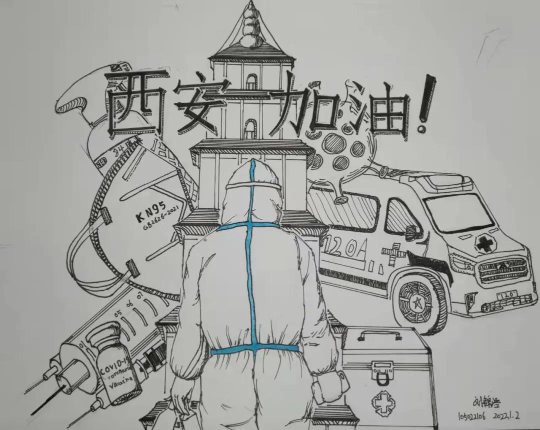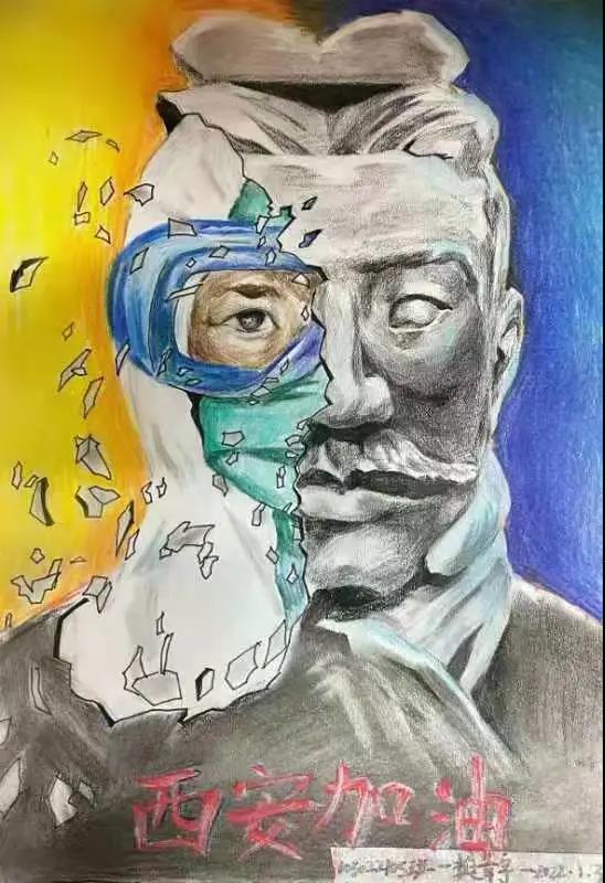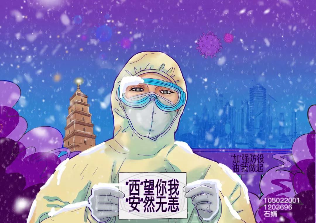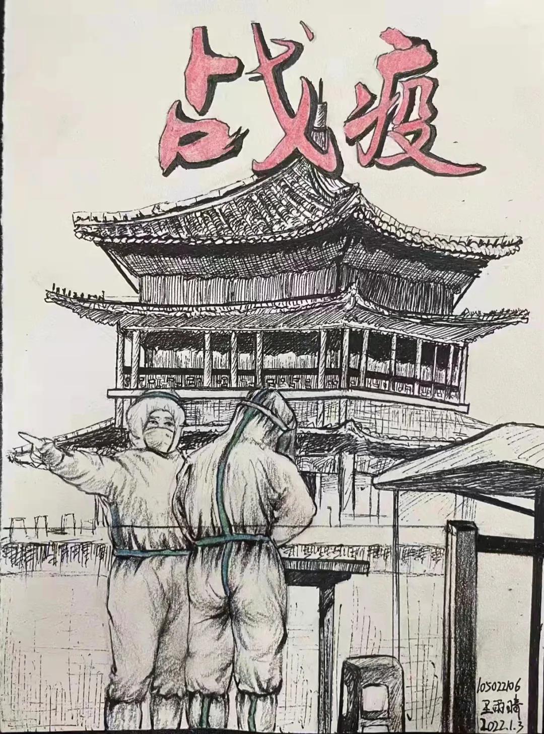 明德学子以高度的社会责任感和使命担当,精心创作“艺”战“疫”系列作品,他们“以眼为镜以笔为画”致敬新时代的英雄,赞美大愛精神,表达对战”疫”英雄的尊敬与感谢。