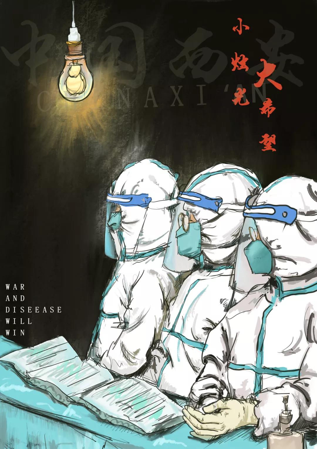 “以眼为镜子以笔为画”艺术与设计学院学子发挥自身专业所学向抗击在一线的工作人员致敬。面对突如其来的疫情,“没有人生来就是英雄,但总要有人在平凡中成就伟大”,艺术与设计学院学子将手中画笔转化为团结奋战的力量,为抗疫发声、向英雄致敬!