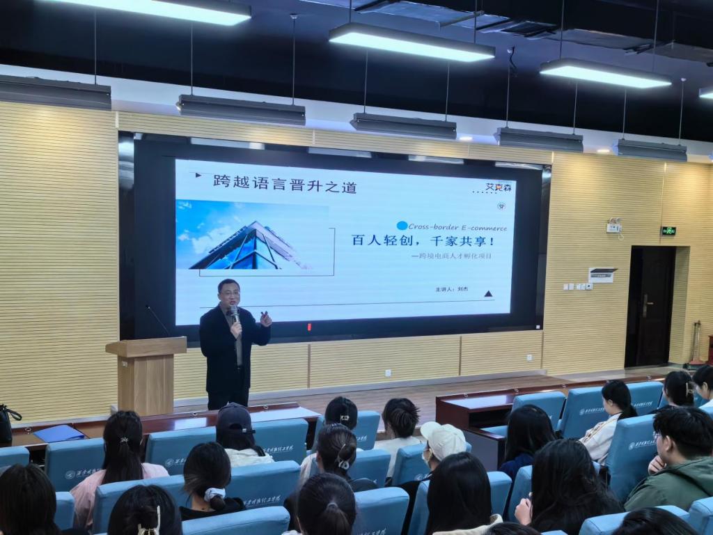 进一步加强我院校企合作,推动产教融合发展,提高学生就业质量和应用型人才培养质量,同时为同学们感受真实企业氛为就业做好准备。3月21日,beat365邀请西安艾克森翻译文化传播有限公司创始人刘杰先生,为全体学生带来一场主题为“跨越语言晋升之道:百人轻创,千家共享!——跨境电商人才孵化”的精彩讲座。