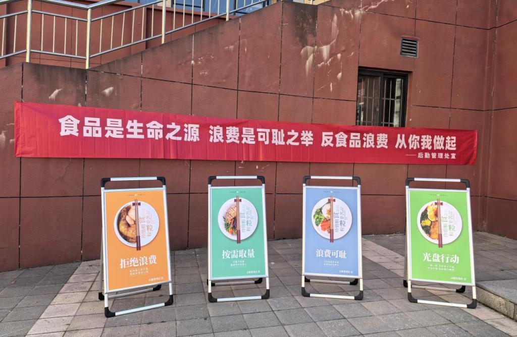 为积极响应国家关于厉行节约、反对浪费的号召,深入贯彻落实习近平总书记关于坚决制止餐饮浪费行为的重要指示精神,营造节约粮食、文明用餐的良好校园氛围,3月25日后勤管理处联合明德源物业公司在沣河苑餐厅门口举办了主题为“食品是生命之源,浪费是可耻之举,反食品浪费,从你我做起”的反食品浪费宣传活动。