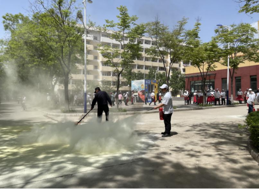 理论培训结束后,王建社老师让大家实际操作,进行了扑救初起火灾的灭火演练。