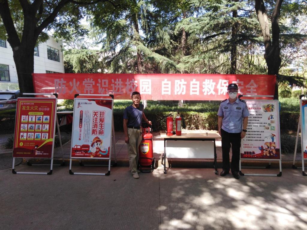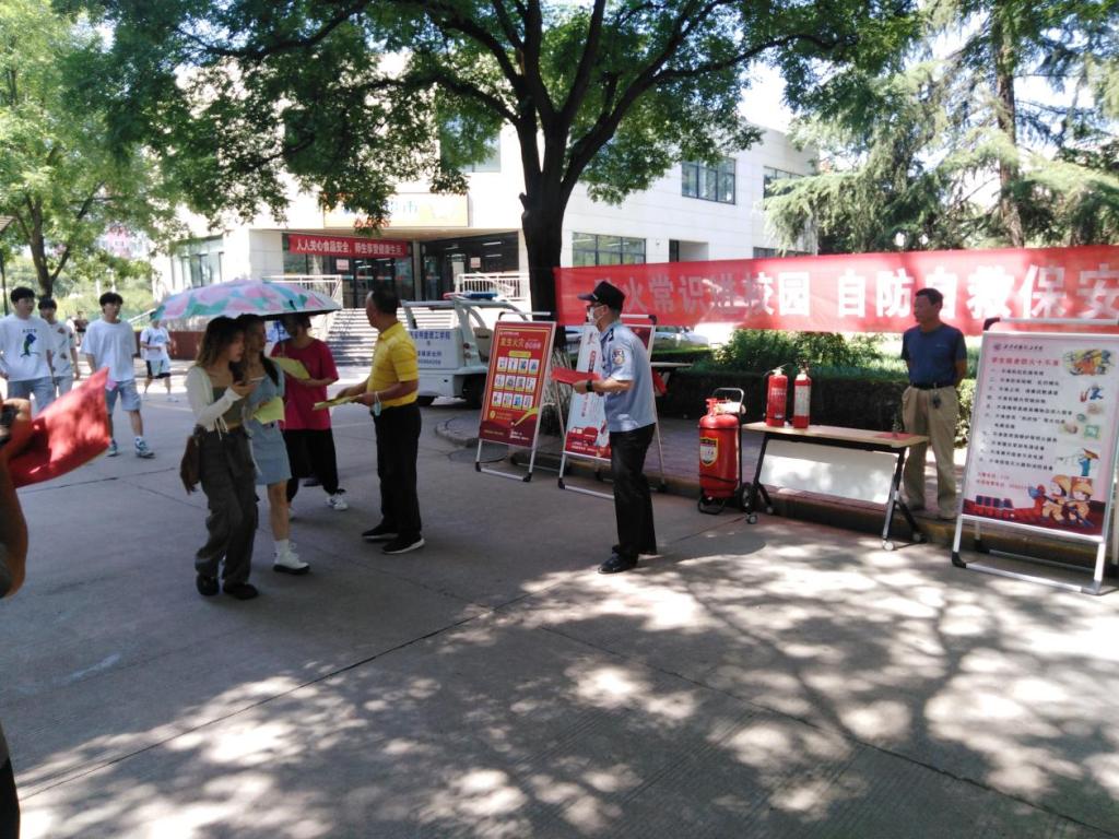 为进一步树立“安全第一”的思想意识,增强学校防灾减灾应急救援能力,后勤管理处于6月15日上午,在学生公寓区域举行题为“防火常识进校园 自防自救保安全”的消防知识宣传活动。