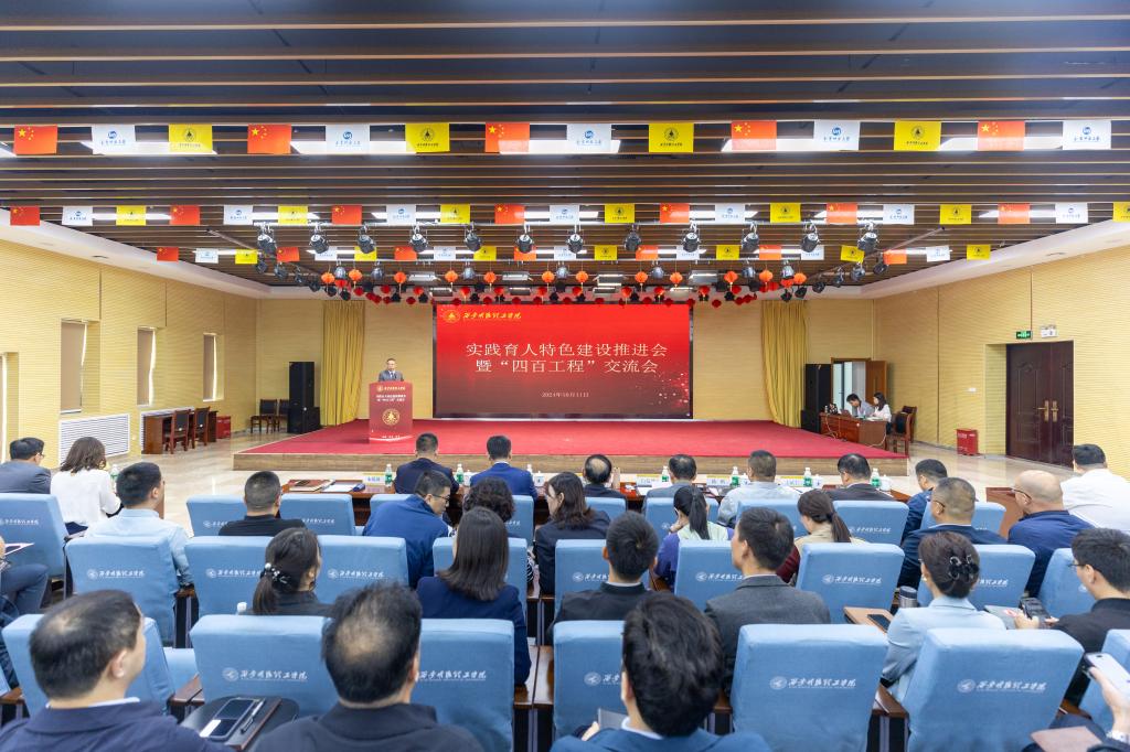 为推进学校实践育人特色建设,不断增强实践育人工作的自觉性、针对性和实效性,彰显实践育人办学特色,10月11日下午,学校实践育人特色建设推进会暨“四百工程”交流会在建德楼203报告厅召开。会议以“聚焦应用型人才培养和高质量发展,扎实推进实践育人体系建设和特色培育”为主题。全体校领导、职能部门和教辅单位负责人、二级学院领导班子成员、专业负责人、教研室主任、教师代表、学生代表等300余名师生参加了会议。会议由副校长朱延波主持。
