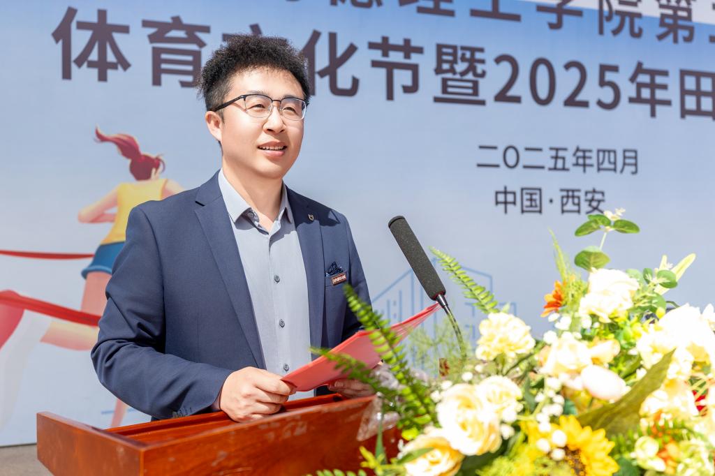 校党委书记马川鑫宣布学校第二十一届体育文化节暨2025年田径运动会开幕。