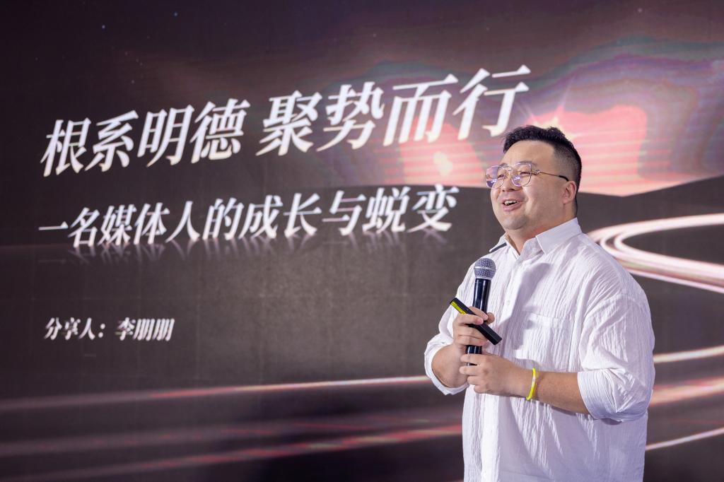 2015届校友李朋朋作为优秀校友代表发言,他回顾了其“根系明德”的成长起点,分享了从大学时代担任学生会主席策划校园活动积累经验,到成为资深媒体人的十年蜕变之路。如今,他以中国报业《党报头条》区域总经理的全新身份,致力于深化媒体融合、巩固主流舆论,并积极推动如《对话西安》高端访谈等聚焦区域高质量发展的项目,展现了明德校友在服务社会、赋能发展中的责任担当与卓越贡献。