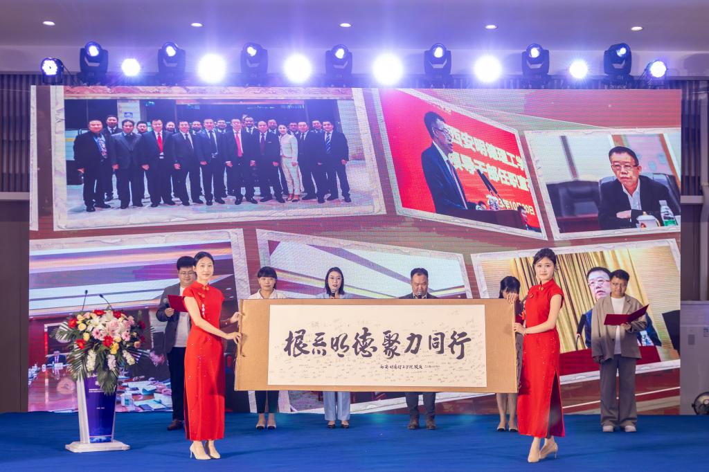 活动上,校友代表们发起了《根系明德·聚力同行》主题的校友宣言,并向母校赠送象征传承的纪念画轴;执行董事张琳总也为全体参会校友准备了象征“一辈子”的纪念品水杯。