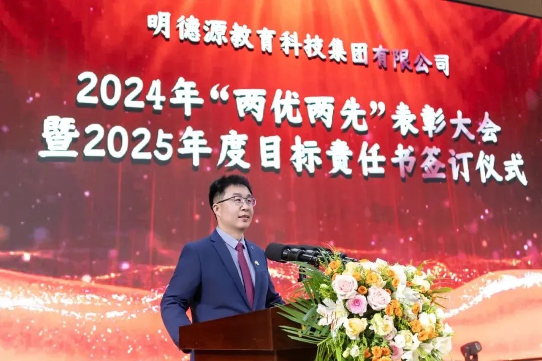 张琳女士号召:全体员工以表彰为起点,以责任书签约为誓言,以团结一心的精神、风雨无阻的勇气、日夜兼程的执着,共同谱写明德源教育事业发展的新华章。
