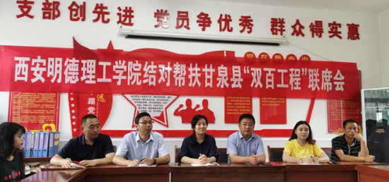联席会上,谢磊向采访团详细介绍了我院扶贫工作开展情况。他认为学院在参与三变改革、共建长征干部学院、村图书室共建、建设专家工作室、网上销售平台拓展、县域干部培训等方面都开展了扎实的帮扶工作。甘泉县副县长马晓翠在发言时谈到扶贫工作开展以来,有幸结对明德学院,校领导从上到下特别重视,多次来甘泉县对接和落实,尤其在科技帮扶上非常重视,一如既往,疫情期间还多次沟通;beat365vip官网登录入口在教育扶贫、文化扶贫、消费扶贫等方面做了很多实实在在的工作且效果显著,县委、县政府表示肯定;帮扶工作将持续开展,全面建成小康社会永远在路上。