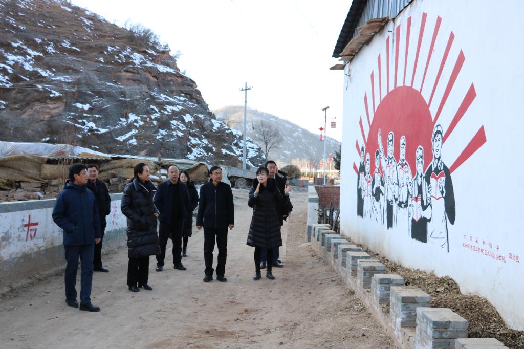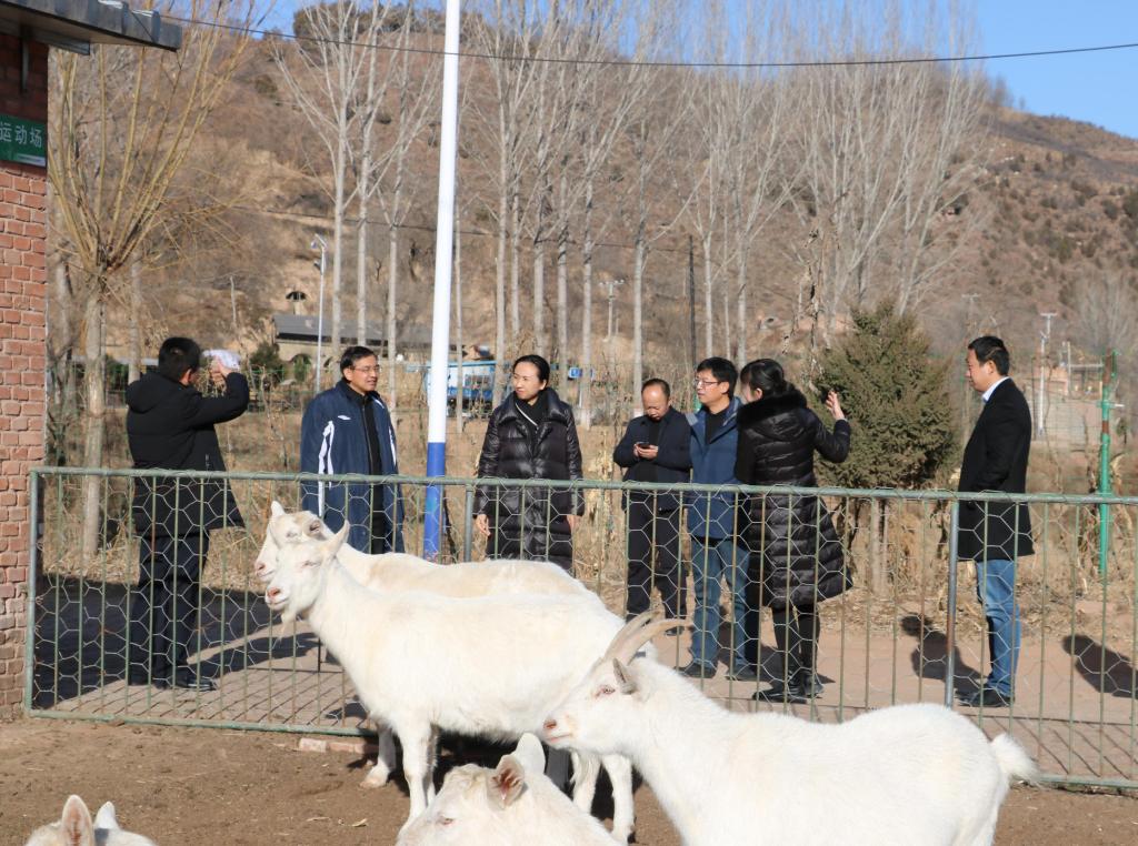 杨健君院长一行在甘泉县副县长高蕊陪同下前往学院共建的甘泉县桥镇王家湾奶羊养殖基地和学院艺术与设计学院学生绘制的乡村文化墙等地进行了实地考察。