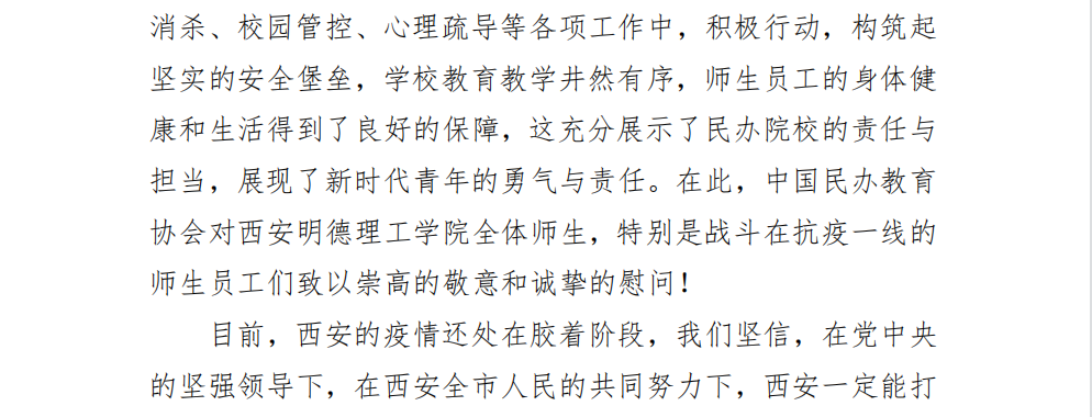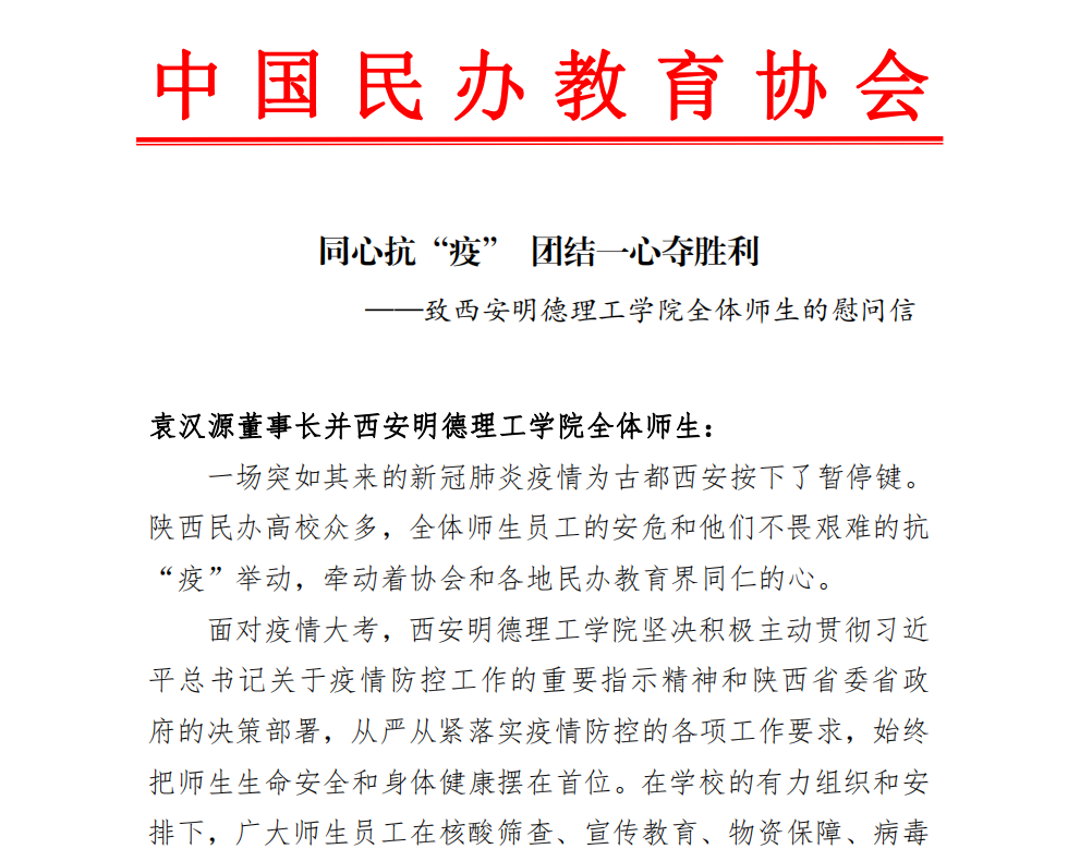 中国民办教育协会致beat365vip官网登录入口全体师生的慰问信