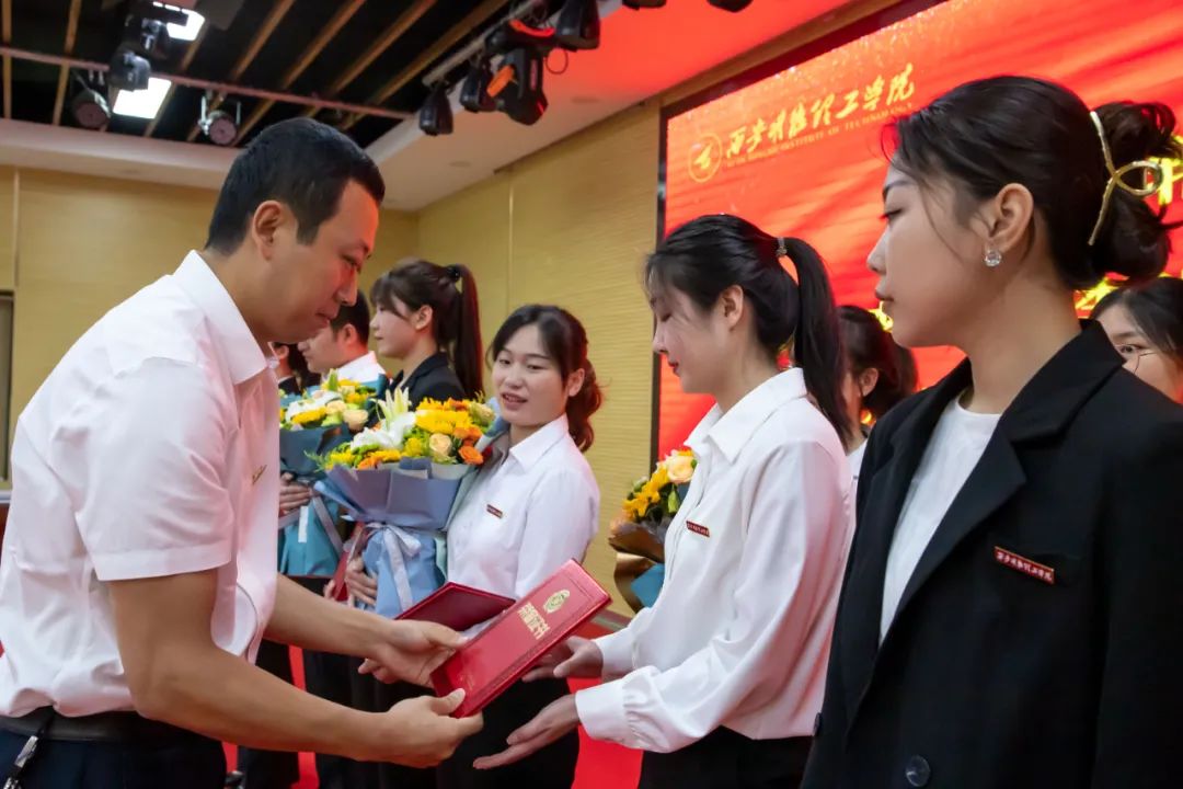 校领导为获得省级和校级的先进个人颁发了荣誉证书。