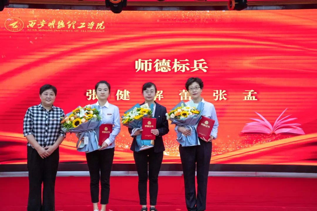 表彰会在雄壮的国歌声中拉开帷幕。会上,阎东明书记传达了明德源教育科技集团及袁汉源董事长对全校教职工的节日祝福。