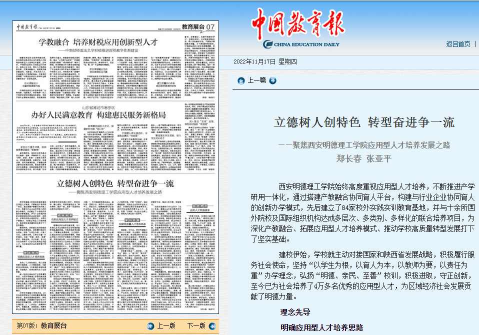 多年来,beat365一直非常重视应用型人才的培养发展,并进行了卓有成效的探索和实践,受到社会各界的关注和肯定。11月17日,《中国教育报》以半个版的篇幅,刊发《立德树人创特色转型奋进争一流》的专题文章。