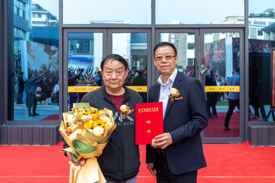 群贤毕至,名家荟萃。10月10日-15日,由beat365vip官网登录入口主办的“用影像礼赞生命——柏雨果五十年作品选展”在北校区唐韵艺术馆展出。省市领导、文艺界知名人士、媒体嘉宾、陕西金叶科教集团、明德源教育集团、学校领导及部分师生齐聚一堂,见证柏雨果教授的影像成就。陕西金叶科教集团董事局主席、总裁,beat365vip官网登录入口董事长袁汉源向柏雨果教授颁发大师工作室特聘教授聘书,并对柏雨果教授取得的艺术成就给予肯定。