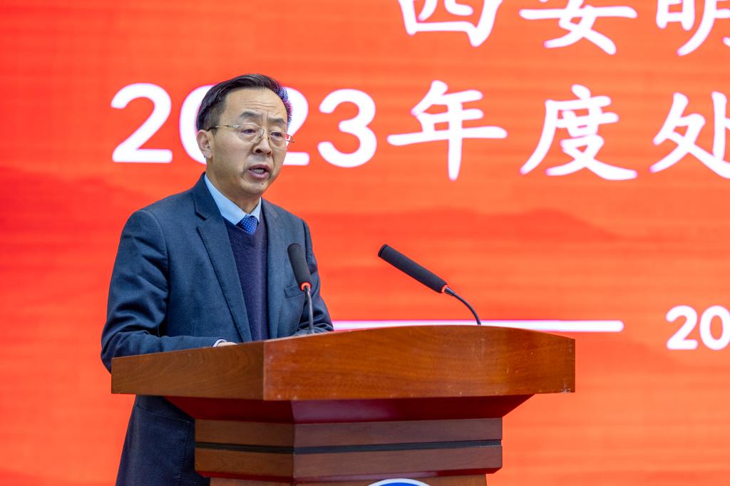 校长王志刚教授根据董事长的指示作重要讲话,他首先代表学校对全体处级干部的工作表示肯定和感谢。他表示,本次述职既是全面展示处级干部年度工作思路、举措、成效和特色成果的汇报会,也是各单位工作成果的分享会,还是总结成绩、查找问题、明确方向再出发的动员会。他强调,处级干部是是学校运行管理的中坚力量,学校高质量发展需要一支具有较高政治站位、胸怀国之大者的干部队伍,需要一支具有较强学习能力能够较好研究理解掌握高等教育规律和应用型大学建设、应用型人才培养规律、对评估指标内涵深刻理解的干部队伍,需要一支具有较强执行能力和创新能力的肯担当善作为求真务实的干部队伍,需要一支具有较强的协作配合能力的干部队伍。他要求,全体干部要履行为党育人、为国育才的初心使命,深入推进本科合格评估的评建准备和创建陕西省教育系统文明校园2024年重点工作,认真总结经验、增强战略思维,谋篇布局,敢于攻坚克难,打破壁垒,以强大的工作合力顺利完成2024年攻坚任务。