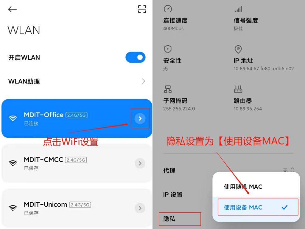 第一步:点击【wifi设置】 第二步:隐私设置为【使用设备MAC】
