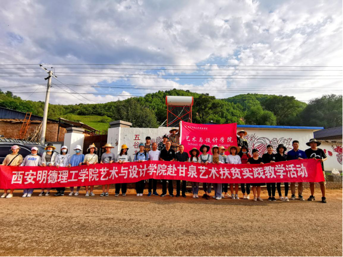 2020年7月8日,学院执行董事长赵天骄、招生就业办公室副主任刘佳及招生办陕北大区负责人朱雪松、蔡娜等一行专程前往延安市甘泉县桥镇乡,慰问艺术与设计学院艺术扶贫实践活动工作的师生,并现场指导本次艺术扶贫实践活动,对我院师生发扬艰苦奋斗精神,以传承红色基因,担当时代责任的精神给予高度认可。